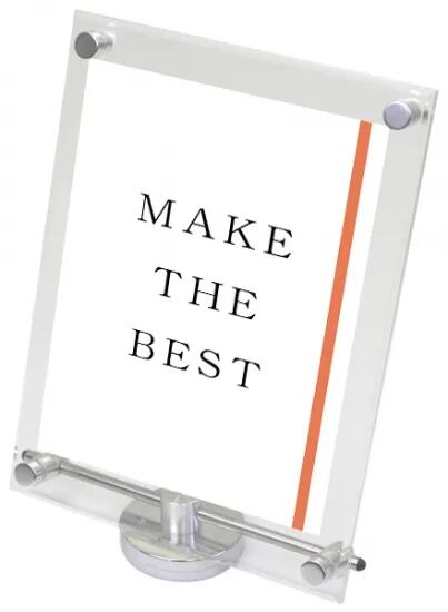 アクリルと化粧ビスでポスターを挟み込んで展示する高級感ある卓上サイン
