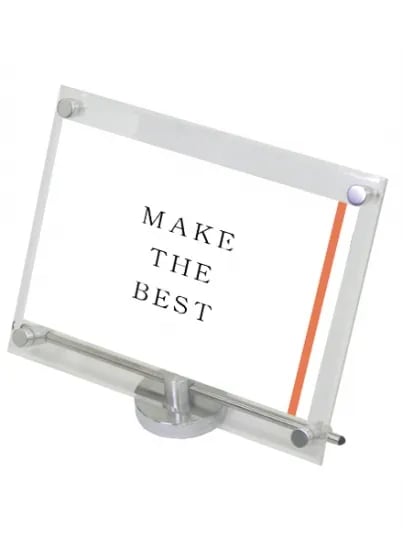 アクリルと化粧ビスでポスターを挟み込んで展示する高級感ある卓上サイン