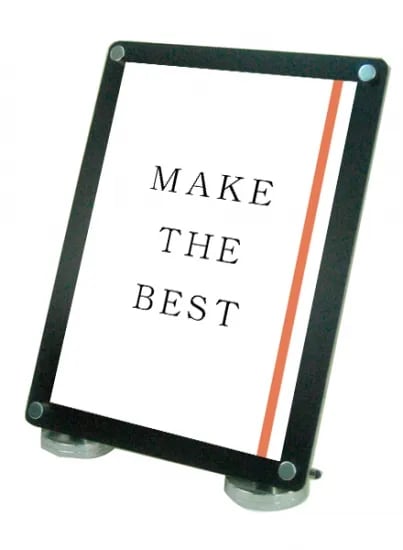 アクリルと化粧ビスでポスターを挟み込んで展示する高級感ある卓上サイン