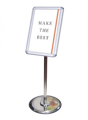 ポスターを自由な向き、自由な角度で展示できる四辺開閉式のポールスタンド