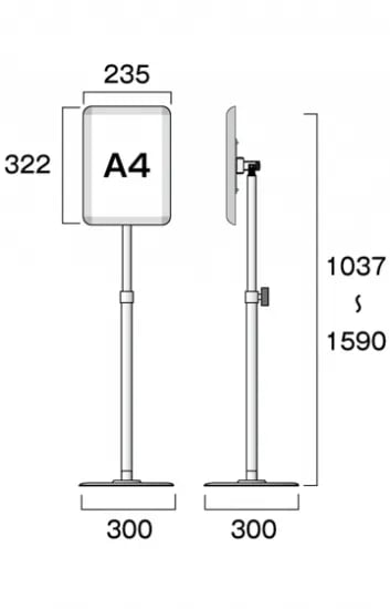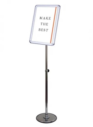 ポスターを自由な向き、自由な角度で展示できる四辺開閉式のポールスタンド