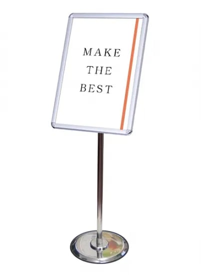 ポスターを自由な向き、自由な角度で展示できる四辺開閉式のポールスタンド