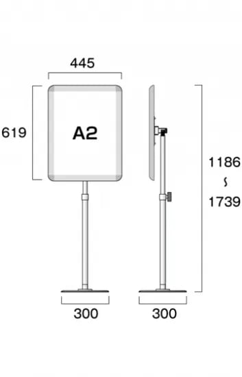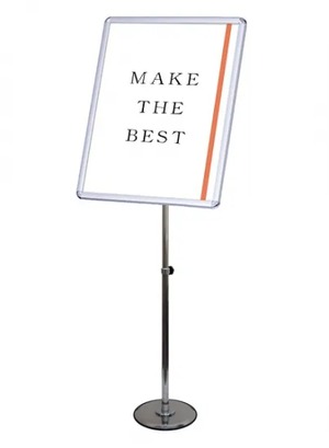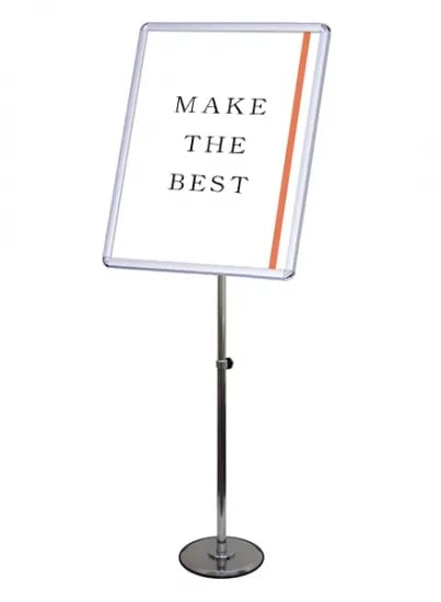 ポスターを自由な向き、自由な角度で展示できる四辺開閉式のポールスタンド