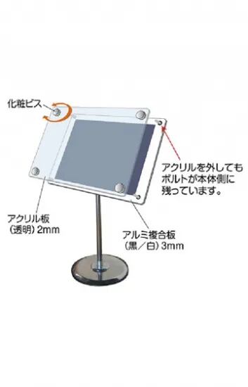 ●面板=アルミ複合板(黒)3mm+アクリル板(透明)2mm〔注意〕 移動の際は本体ポール部分を持ち上げて下さい。