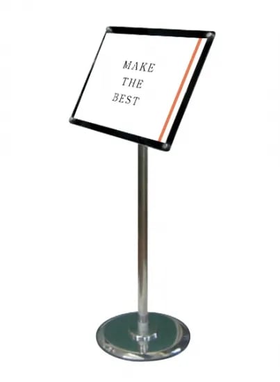 ポスターを360度自由な向きで展示でき、展示角度も調節できるポールスタンド