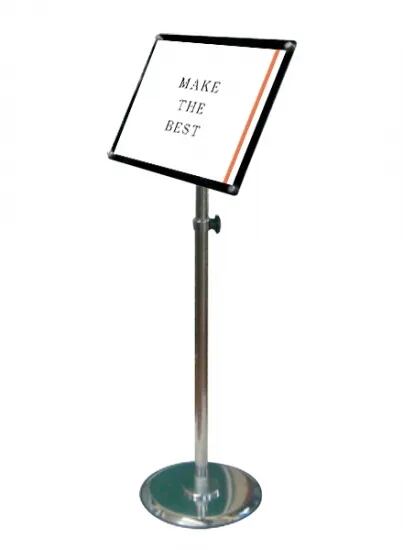 ポスターを360度自由な向きで展示でき、展示角度も調節できるポールスタンド