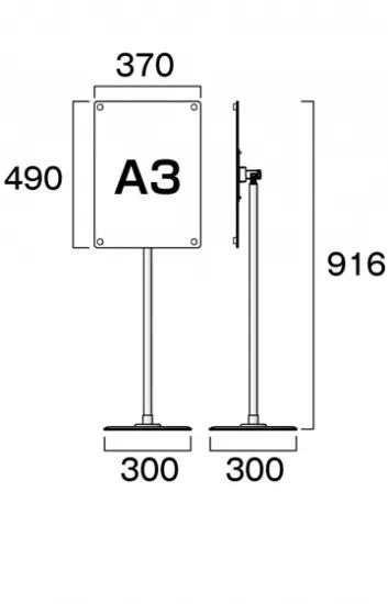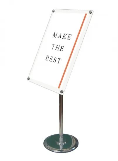 ポスターを360度自由な向きで展示でき、展示角度も調節できるポールスタンド