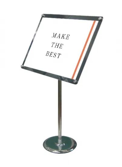 ポスターを360度自由な向きで展示でき、展示角度も調節できるポールスタンド