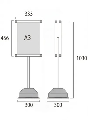 屋外ポールサインスタンド A3両面 ブラック