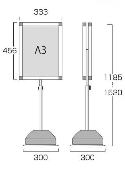 屋外ポールサインスタンドスライド A3両面 シルバー