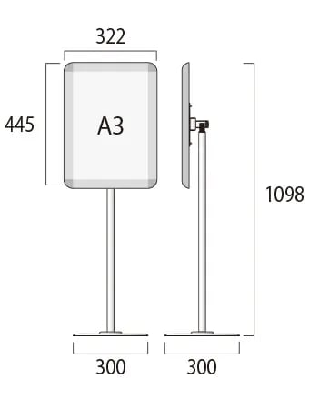 ●パネルフレーム幅=20mm〔注意〕屋内用/移動の際は本体ポール部分を持ち上げて下さい。