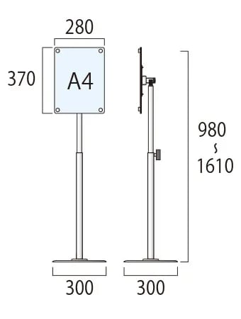 ●面板=アルミ複合板(白)3mm+アクリル板(透明)2mm〔注意〕屋内用/移動の際は本体ポール部分を持ち上げて下さい。