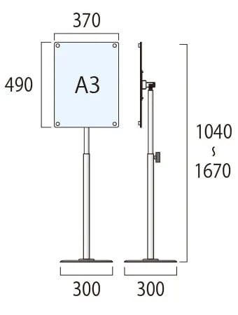 ●面板=アルミ複合板(白)3mm+アクリル板(透明)2mm〔注意〕屋内用/移動の際は本体ポール部分を持ち上げて下さい。