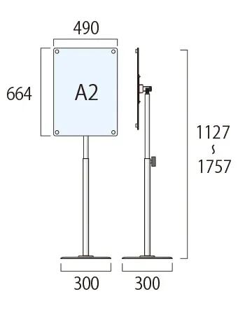 ●面板=アルミ複合板(黒)3mm+アクリル板(透明)2mm〔注意〕屋内用/移動の際は本体ポール部分を持ち上げて下さい。