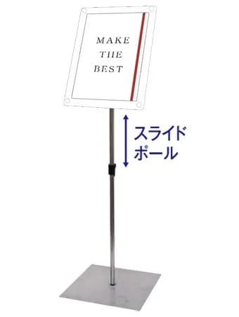 ●化粧ビス=アルミ/アルマイト仕上(シルバー)〔注意〕屋内用/移動の際は本体ポール部分を持ち上げて下さい。