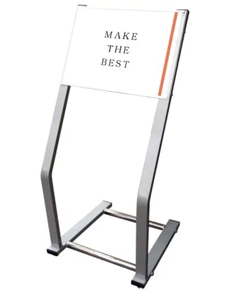 脚線美とフレームレス構造でポスターを美しく見せるフロアスタンド