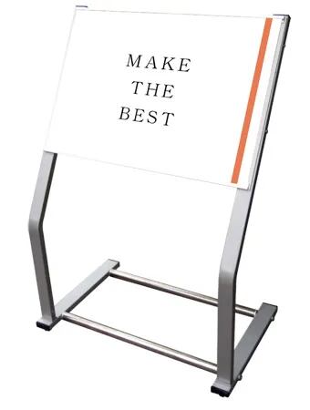 脚線美とフレームレス構造でポスターを美しく見せるフロアスタンド