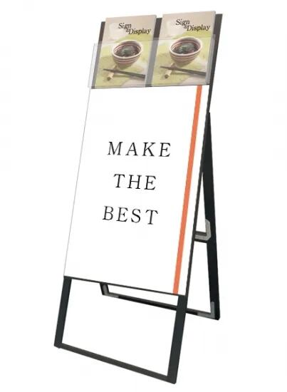 Aサイズのカタログを配布できるケースが付いた横スライド式のスタンド看板