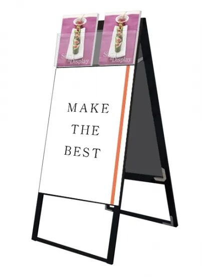 Aサイズのカタログを配布できるケースが付いた横スライド式のスタンド看板