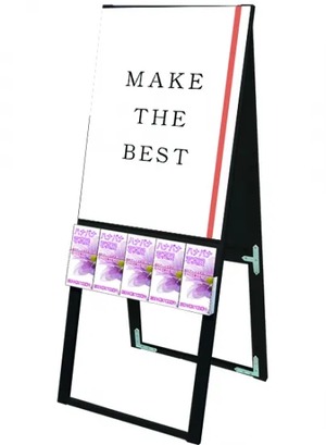 A4三つ折りパンフレットを配布できるケースが付いた横スライド式のスタンド看板