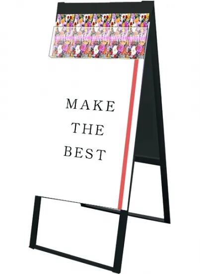 A4三つ折りパンフレットを配布できるケースが付いた横スライド式のスタンド看板