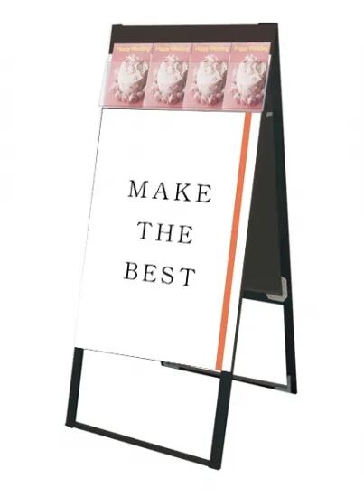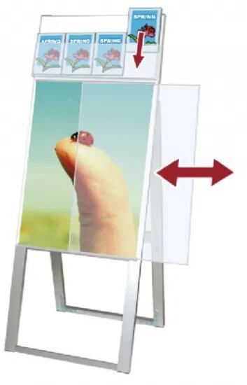 A4三つ折りパンフレットを配布できるケースが付いた横スライド式のスタンド看板
