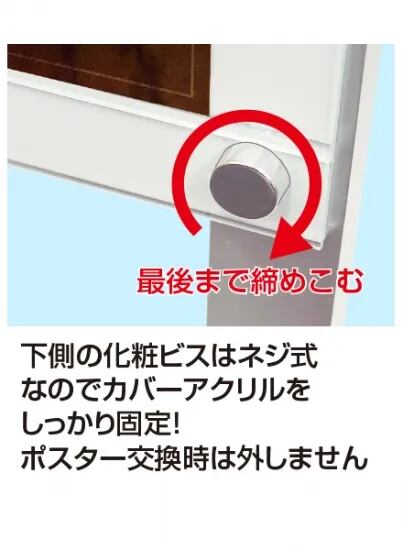 ポスターをより簡単に交換できるA4三つ折りパンフレット用ケースが付いたスタンド看板