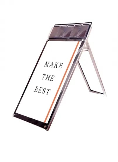 ポスターをより簡単に交換できるA4三つ折りパンフレット用ケースが付いたスタンド看板