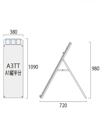 ポスター用スタンド看板マグネジ パンフレットケース付 A3縦縦ロウ片面ブラック(屋内用)