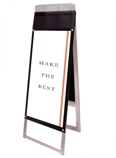 ポスターをより簡単に交換できるA4三つ折りパンフレット用ケースが付いたスタンド看板