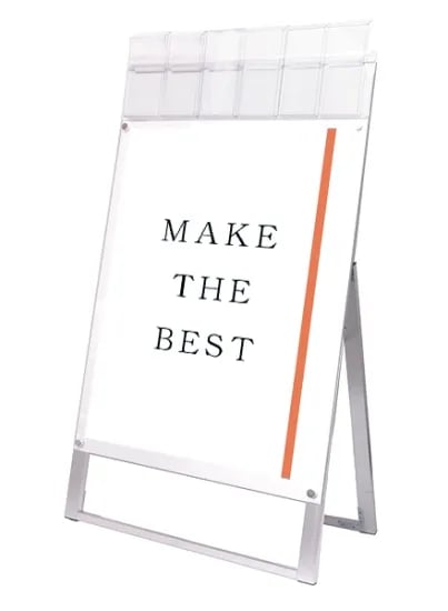 ポスターをより簡単に交換できるA4三つ折りパンフレット用ケースが付いたスタンド看板