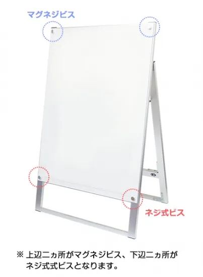 磁石を利用したビスによりポスターを画期的に簡単に交換できる次世代スタンド看板