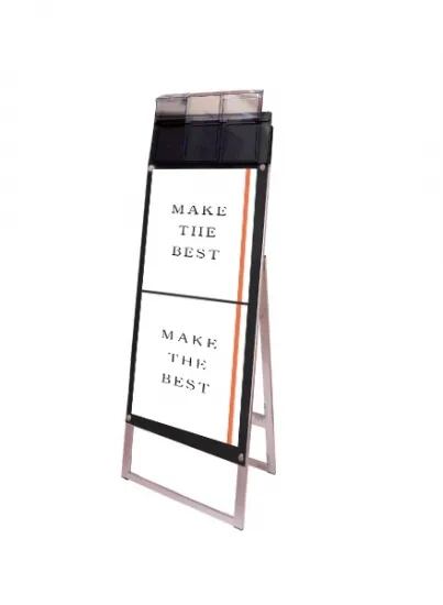 お洒落な雰囲気にも合うA4三つ折りパンフレット用ケースが付いたスタンド看板