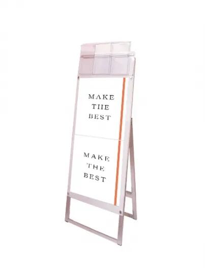 お洒落な雰囲気にも合うA4三つ折りパンフレット用ケースが付いたスタンド看板