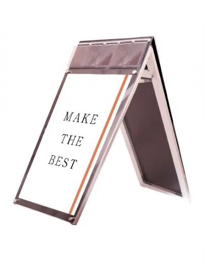 お洒落な雰囲気にも合うA4三つ折りパンフレット用ケースが付いたスタンド看板