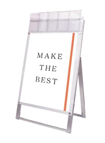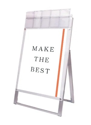 お洒落な雰囲気にも合うA4三つ折りパンフレット用ケースが付いたスタンド看板