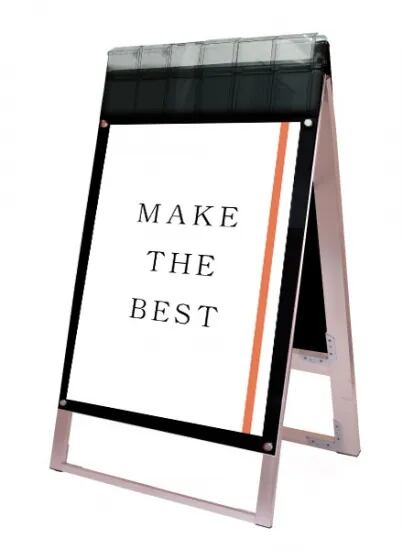 お洒落な雰囲気にも合うA4三つ折りパンフレット用ケースが付いたスタンド看板