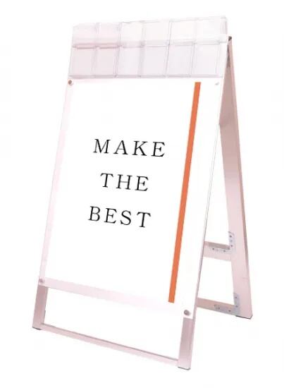 お洒落な雰囲気にも合うA4三つ折りパンフレット用ケースが付いたスタンド看板