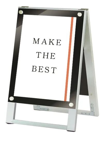 アクリルと化粧ビスでポスターを挟み込んで展示する高級感あるスタンド看板