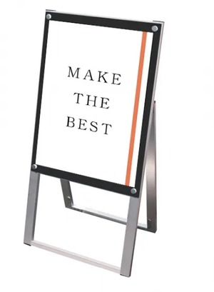 アクリルと化粧ビスでポスターを挟み込んで展示する高級感あるスタンド看板