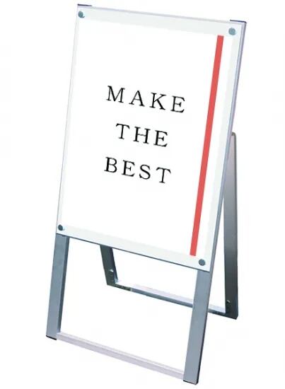 アクリルと化粧ビスでポスターを挟み込んで展示する高級感あるスタンド看板
