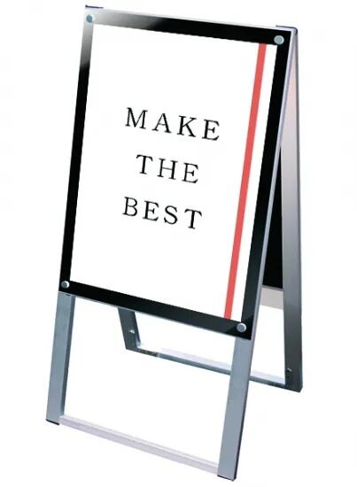 アクリルと化粧ビスでポスターを挟み込んで展示する高級感あるスタンド看板