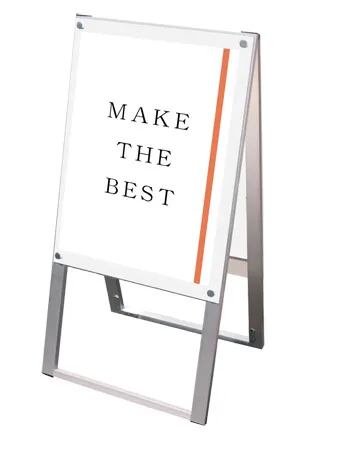 アクリルと化粧ビスでポスターを挟み込んで展示する高級感あるスタンド看板