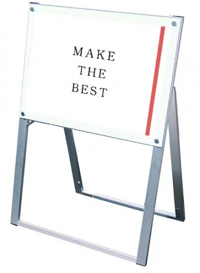アクリルと化粧ビスでポスターを挟み込んで展示する高級感あるスタンド看板