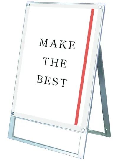 アクリルと化粧ビスでポスターを挟み込んで展示する高級感あるスタンド看板
