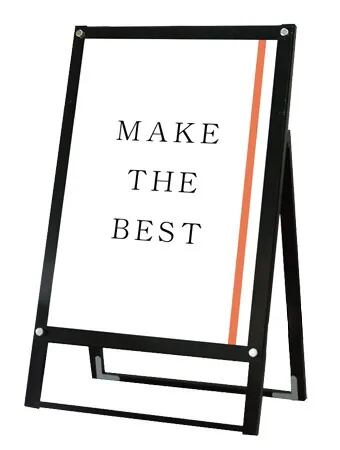 アクリルと化粧ビスでポスターを挟み込んで展示する高級感あるスタンド看板