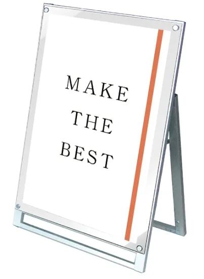 アクリルと化粧ビスでポスターを挟み込んで展示する高級感あるスタンド看板