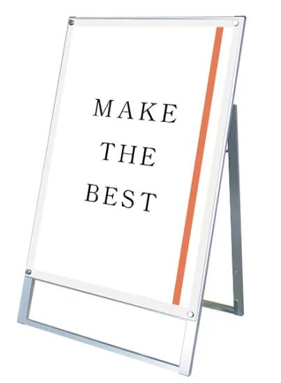 アクリルと化粧ビスでポスターを挟み込んで展示する高級感あるスタンド看板
