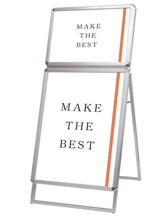 定番×季節商品など、2種類のポスターを同時に展示できるスタンド看板