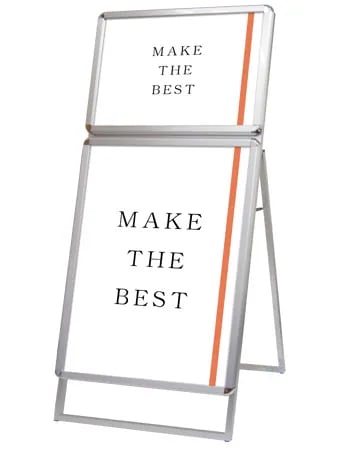 定番×季節商品など、2種類のポスターを同時に展示できるスタンド看板